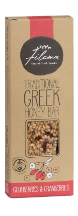 Συστατικά: Μέλι 40%, Σουσάμι 39%, Κράνμπερι 14% (κράνμπερι, χυμός ανανά, ηλιέλαιο), Γκότζι μπέρι 7%, Κανέλα.