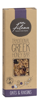 Συστατικά: Μέλι 35%, Νιφάδες βρώμης 22%, Σουσάμι 18%, Σταφίδες 15%, Ηλιόσποροι 10%, Κανέλα.